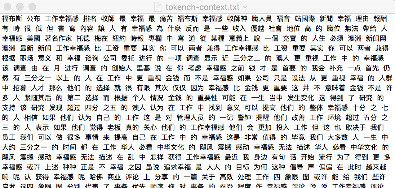 For a Chinese corpora, it is impossible to treat it in the same way as we did with the other languages, the Chinese texts are not segmented with space, and since there is no space between Chinese words, we should take other measures for the preprocessing of the Chinese corpus.