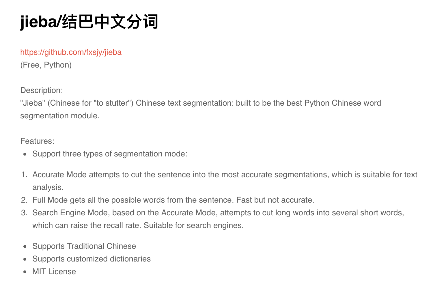 For the segmentation of the Chinese corpus, we can use the Jieba module of Python which was developed by MIT.